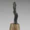 La statuette ne présente ni manque, ni déformation bien qu’elle soit très corrodée. La corrosion du métal est constituée de cuprite recouverte d’une couche verte de carbonates sous forme de malachite et de plages vert clair dont il est difficile de déterminer sans analyse s’il s’agit de carbonates ou de sulfates de cuivre. Sous l’amas de terre collée au revers apparaissent des efflorescences vert clair, sans doute liées à la présence de chlorures dans la terre. Les détails sont patinés mais les formes générales de la figure sont reconnaissables.