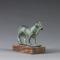 Bien que le métal soit oxydé et ait pris une teinte uniformément vert-de-gris, les détails du modelé du corps de l’animal sont lisibles. La tête est érodée, les cornes en particulier. Deux petits trous percent l’ergot de la patte antérieure droite et le jarret de la patte postérieure droite.