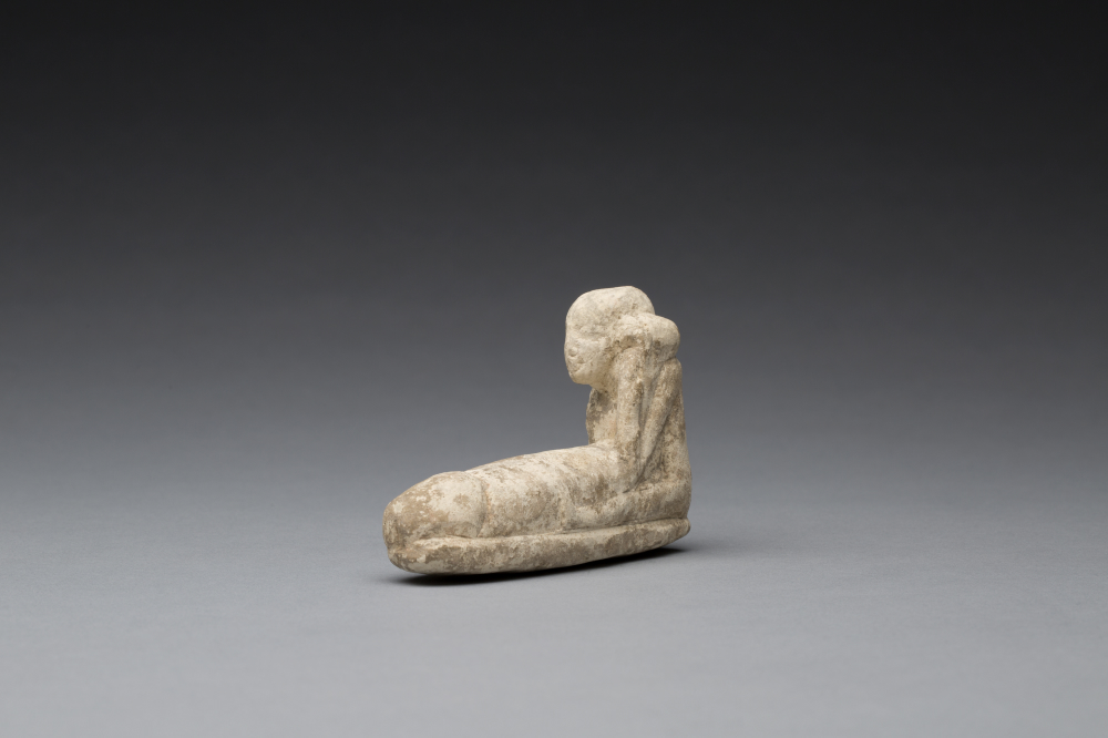 La statuette Co. 2358 appartient aux figurines ithyphalliques que l’on trouve en Egypte tout au long de la période pharaonique. Les matériaux utilisés sont généralement le bois, la pierre, la terre cuite et parfois la faïence. Les plus anciennes figurines ithyphalliques en calcaire retrouvées à ce jour sont datées de l’Ancien Empire, notamment celles déposées dans le temple de Satet à Assouan. Les sites où furent mis au jour ces figurines sont très souvent associés à des sanctuaires, à l’instar de Deir el-Bahari, Mirgissa, Timna ou le Gebel Zeit. L’essentiel du corpus provient de la période gréco-romaine, époque où leur production s’intensifia. Longtemps mis à l’écart par la communauté savante en raison de leur caractère obscène apparent, ce matériel suscite encore toute une série de questions. Le sexe masculin est un élément bien connu de l’iconographie égyptienne. C’est un des attributs et caractéristiques principaux de nombreuses divinités telles qu’Osiris, Baba, Min, Amon-Rê ou encore Bès. Le phallus d’Osiris joue un rôle crucial dans la version du mythe rapporté par Plutarque qui indique que le dieu, martyrisé par son frère Seth, fut découpé en quatorze morceaux dispersés dans les eaux fluviales, rassemblés ensuite par sa sœur et épouse Isis afin reconstituer le corps de son époux. Dans ce récit, l’unique morceau qu’elle ne put retrouver était le phallus d’Osiris, avalé par le poisson oxhyrinque. La déesse parvint à le reconstituer magiquement afin de permettre la conception de leur fils, Horus. Osiris est une divinité fortement liée à la fertilité du monde végétal. On attribue la crue du Nil à l’écoulement des lymphes, ou rejdouou, du cadavre du dieu. Parmi les Mystères d’Osiris, célébrés au mois de Khoiak, on peut mentionner les « osiris végétant », figurines faites de boue dans lesquelles on faisait germer des plantes, symbolisant la gestation et renaissance du dieu. Osiris est une divinité masculine de la fertilité et de la terre. La terre est d’ailleurs un élément masculin dans l’univers égyptien, incarné par le dieu Geb. Min est une autre divinité masculine vouée au maintien de  la fertilité. Très ancienne divinité représentée quasi systématiquement de façon momiforme, il arbore invariablement un phallus en érection. Le dieu babouin Baba, dont l’aspect phallique est mis en valeur dès la rédaction des Textes des Pyramides, est également le garant de la fertilité humaine et animale. Bès, le nain d’aspect grotesque est également une personnalité divine étroitement liée à la fertilité sous toutes ses formes. A cette courte liste, on pourrait ajouter les noms d’autres dieux tels qu’Amon-Rê ou Rê. Procréation et  naissance étant autant l’apanage des divinités masculines que féminines, il est tentant d’associer ce type de figurines masculines épanouies et prêtes à donner la vie à  celles des figurines féminines appelées à tort « concubines du mort », prêtes à accueillir la vie. On remarque que certaines des divinités représentées ithyphalliques comme Min ou encore Bès sont étroitement associées à Hathor, déesse, entre autre, de la fertilité et de la fécondité. Ainsi, Min de Koptos est-il adoré en partenariat avec Hathor au Gebel Zeit, par exemple. Ce duo divin personnifie le pouvoir créateur par l’association des éléments masculins et féminins. G. Pinch évoque l’hypothèse qu’il était possible d’offrir des offrandes similaires à l’une comme à l’autre divinité (PINCH 1986, p.239). Bès, qui est également associé à Hathor sans pour autant en être son égal à l’instar de Min, reçoit de toute évidence des figurines ithyphalliques en offrandes et ce dès l’époque ptolémaïque au moins, notamment dans ses sanctuaires à Saqqarah. Hathor, dont uns des noms est « La Dame de la Vulve », est célébrée lors des festivals ayant lieu à Edfou. Au cours de l’un deux, elle est présentée avec le phallus de Rê-Atum. Selon la cosmogonie égyptienne, c’est en effet par la masturbation que le démiurge engendra les autres divinités. Hathor est parfois identifié à la main du dieu qui a permis la masturbation créatrice ou même à son sperme. L’offrande de phallus votifs à la déesse en cette occasion permettait peut-être donc de revivre cette union originelle. L’exhibition du sexe masculin était peut-être aussi l’équivalent de l’anasyrma, ce geste consistant à dévoiler son sexe, qu’Hathor avait exécuté afin de sortir le dieu Rê de sa bouderie. Le phallus, symbole évident de fécondité et de fertilité, peut faire office d’offrandes à plusieurs divinités, notamment à Hathor et ils ont été retrouvés en nombre conséquent dans des sanctuaires dédiés à Hathor, notamment à Deir el-Bahari. Pour autant, la vocation exacte de ce type d’objet reste quelque peu vague. Un seul phallus inscrit est connu à ce jour, dédié par le scribe Ramose à Hathor. Il date du Nouvel Empire et a été retrouvé à Deir el-Medineh. L’inscription est difficile à interpréter, s’agit-il d’une supplication pour avoir des enfants ou bien pour être régénéré au sein du temple ? Un autre phallus en stéatite, de provenance inconnue, porte le cartouche de Thoutmosis III (Conservé au musée national d’histoire et d’art du Luxembourg (Inv. N° 2012-025/0004). Il est d’une longueur de 10,65 cm et d’un diamètre de 1, 95 cm. En contexte égyptien, le phallus humain est non seulement associé à la fertilité humaine mais également au mondes végétal et animal. La figurine Co. 2358 est donc à considérer soit comme un objet apotropaïque, soit comme un objet rituel destiné à favoriser l’union de la déesse Hathor au principe masculine et permettant ainsi la régénération permanente des éléments.