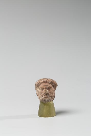 L’association de la barbe et de la couronne de feuillages permet de reconnaître Héraclès, héros grec très populaire en Égypte depuis le règne des Ptolémées qui, en tant qu’élite macédonienne, se réclamaient de la descendance du héros divinisé. La plupart des figurines égyptiennes représentant Héraclès sont des variantes du type de l’Héraclès Farnèse de Lysippe (cf. Co. 6125). Mais en l’absence du corps, il n’est pas possible de rattacher la tête seule à un type ou à une variante précise.