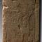 L'œuvre est en mauvais état de conservation. La pierre est très altérée, pulvérulente et érodée. On remarque que de nombreux feuilletages sont prêts à tomber. L’humidité est probablement à l’origine de la plupart des altérations. Le décor est effacé. Chants latéraux supérieur, inférieur et gauche sont d’origine. Le chant droit présente des traces d’outils contemporaines. L’avers a été repris à l’époque contemporaine. De la terre de fouille ocre orangé est conservée sur la face.