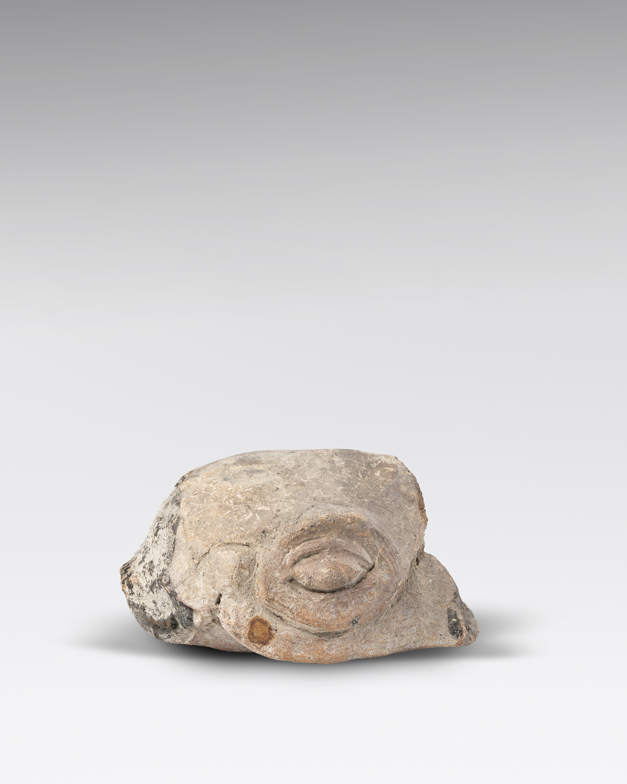 Incomplet. Le corps manque, le bec est cassé et la bosse du front est brisée.