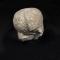 Tête féminine coiffée d’une perruque bouclée. Les traits du visage ont été intentionnellement et méticuleusement  martelés ; on observe en effet que le pourtour est préservé sur 2 à 4 mm.