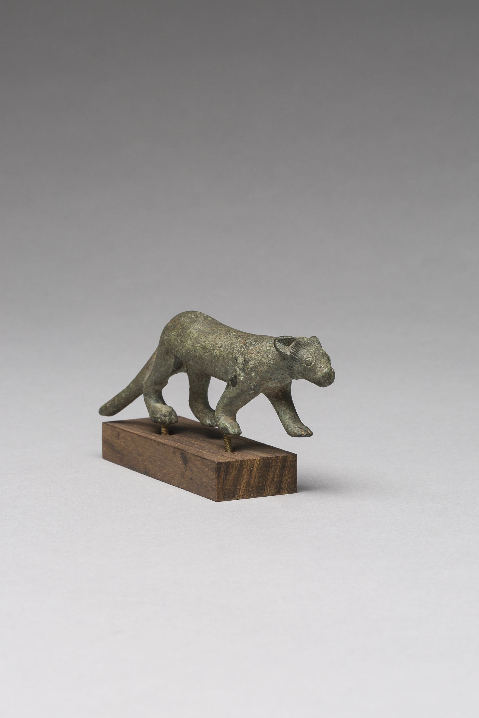 L’œuvre représente un grand félin à quatre pattes en position de marche. Il s’agirait de la représentation en bronze d’une panthère en marche, si on la compare avec les panthères en bois provenant de la tombe d’Amenhotep II (KV 35) ou de Thoutmosis III (KV 34) de la Vallée des Rois. La collerette entourant la face de l’animal est néanmoins à rapprocher des deux figures de guépard du lit funéraire de Toutankhamon (musée du Caire).