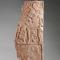 Un texte en deux colonnes occupe l’espace laissé libre devant lui. Sur une photographie en noir et blanc (musée Rodin), prise avant 1967 par le photographe Adelys pour le catalogue Rodin collectionneur , il est possible de constater qu’une troisième colonne de hiéroglyphes les précédaient. En octobre 1967, le relief fut restauré et soclé dans l'atelier de Jean-Michel André, avant son exposition au musée.