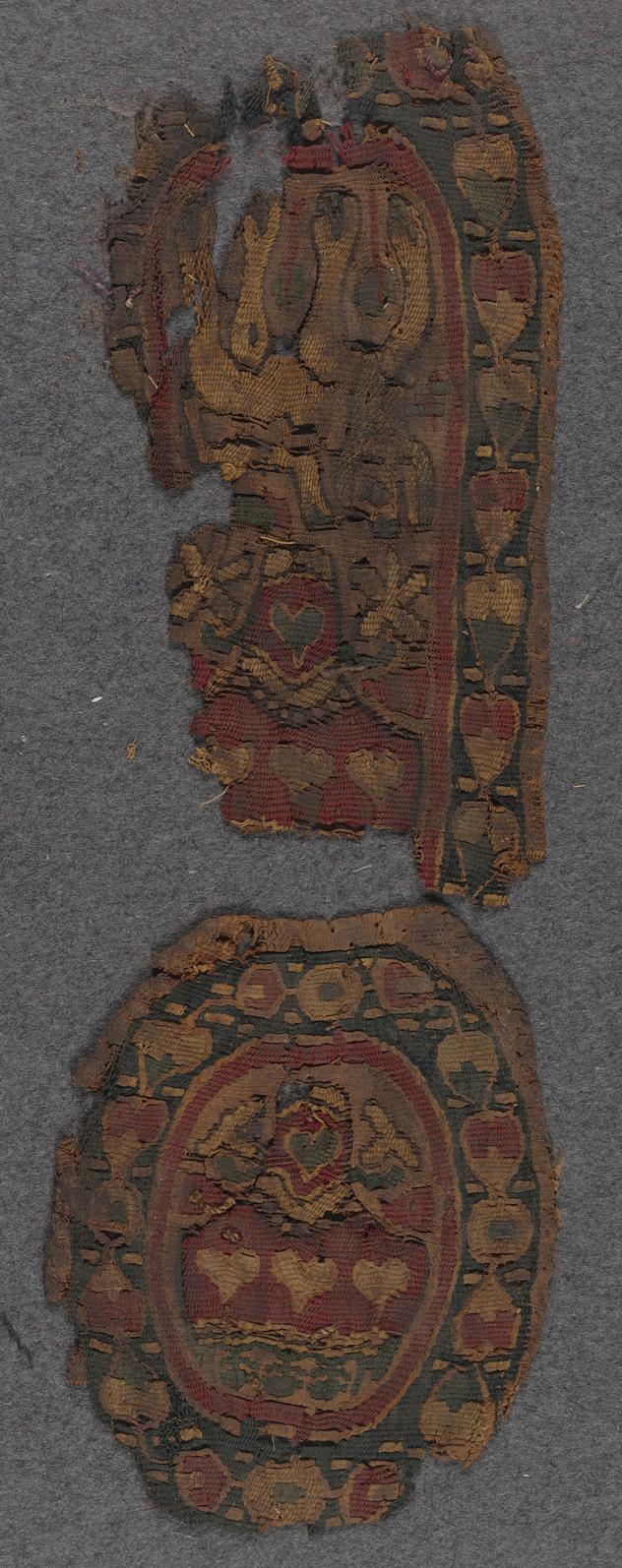 On remarque la finesse du dessin et la légèreté du motif,  apparemment peu courantes sur les textiles coptes. On peut tout de même comparer ce fragment à un galon conservé au Louvre qui présente la même composition (DU BOURGUET 1964, C 1 p. 83 - VIe s.).