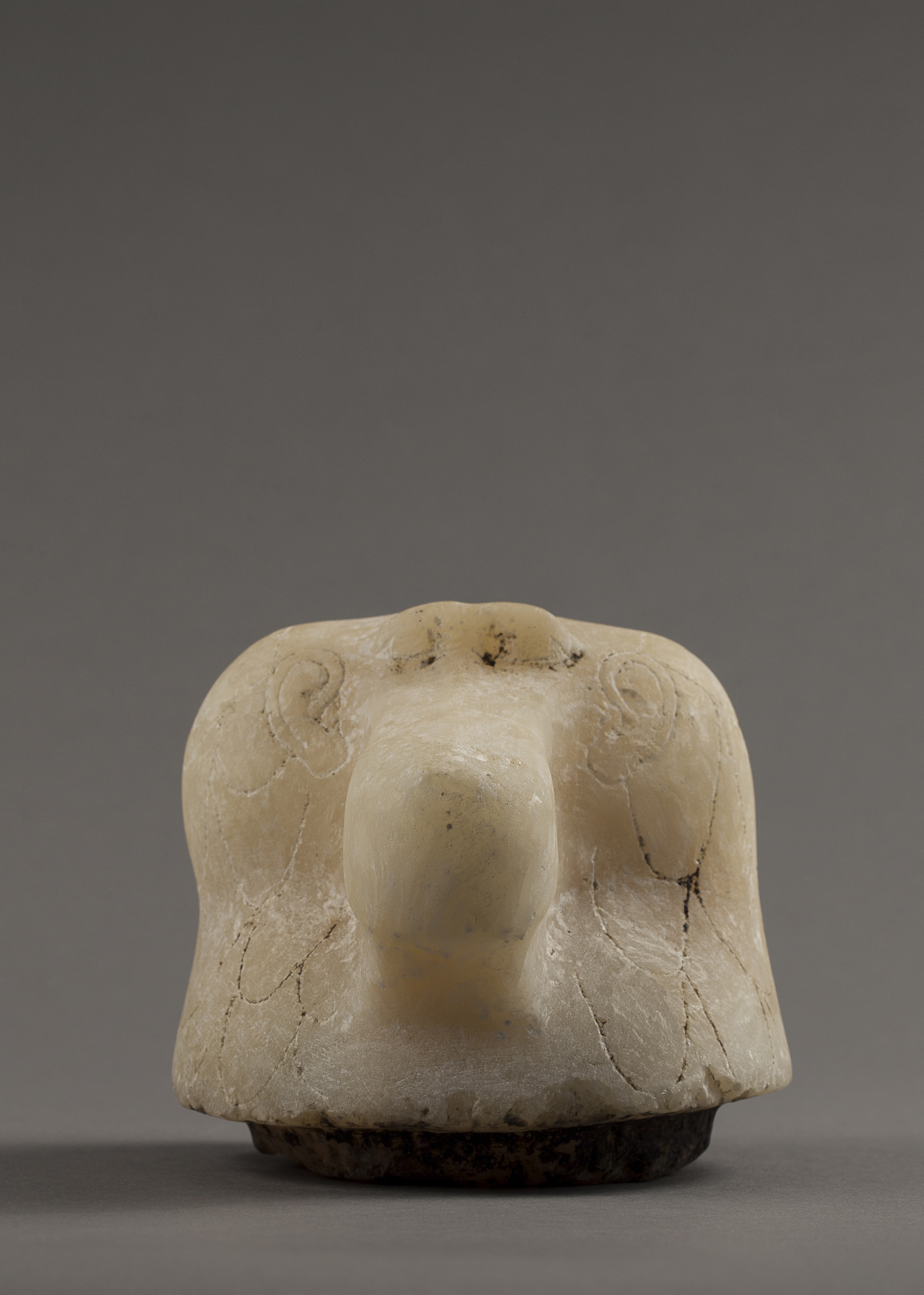 Ce bouchon représente probablement Hâpy, divinité funéraire à tête de babouin chargée de protéger les poumons du défunt.